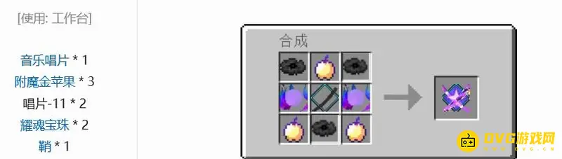 制作这把刀,我们需要一个音乐唱片,三个附魔苹果,两个11号唱片,两个耀魂宝珠和一个鞘,在工作台处就可以合成出无神无刃了,但是这把刀的耐久度比较低,只有11点使用时要注意它的耐久度,或者你可以给他附魔。