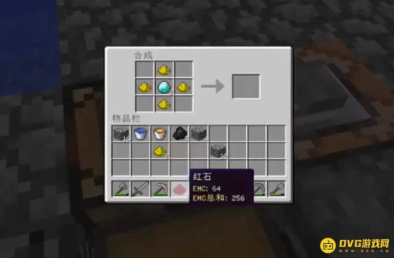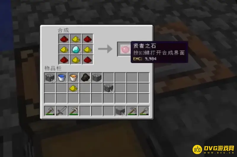 3.剩余的四个空格放置好红石后,可以看到在制作栏的右侧成功合成一个贤者之石。