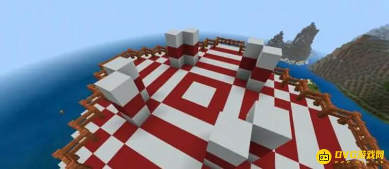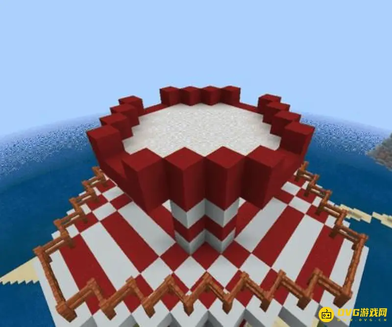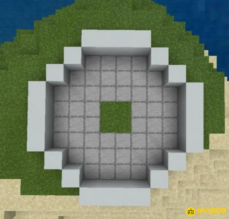 1.首先我们建造灯塔的主体部分,用白色混凝土如图所示,围成一圈加高成5格。