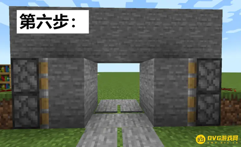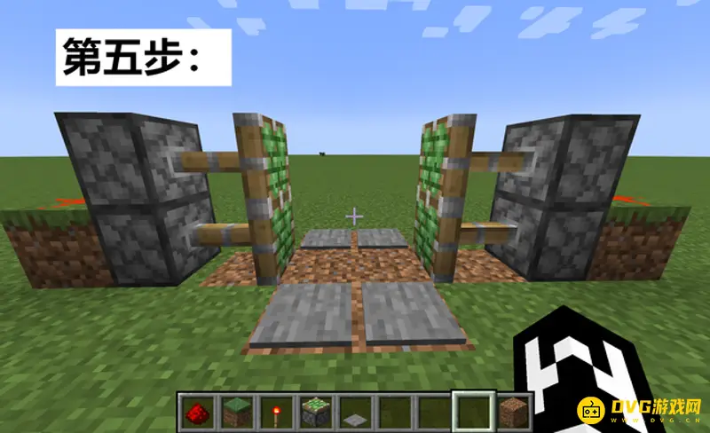 6. 第六步:活塞隐藏门就大功告成啦,最后将当前铺设的红石线路和活塞用方块埋起来,根据环境、方块、压力板的材质配色来搭配建造。