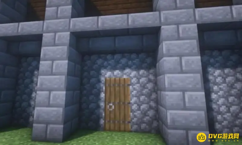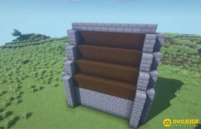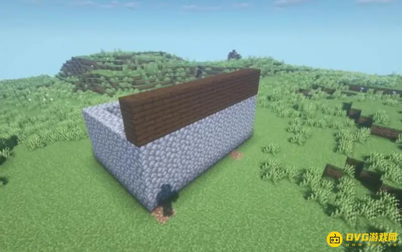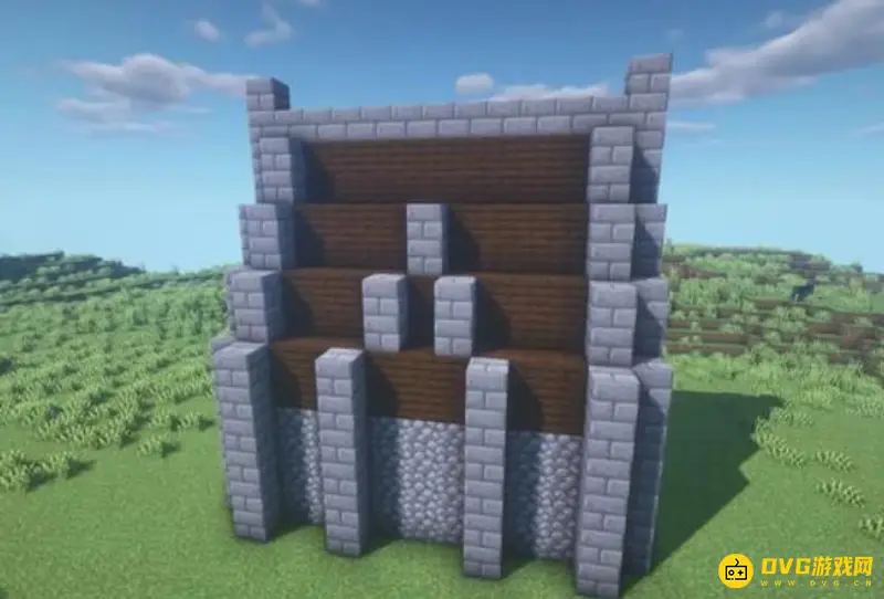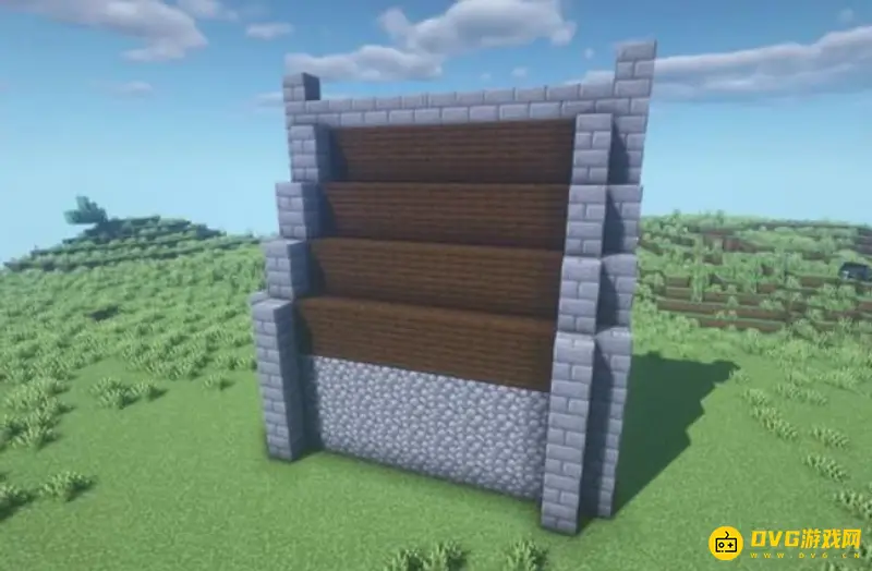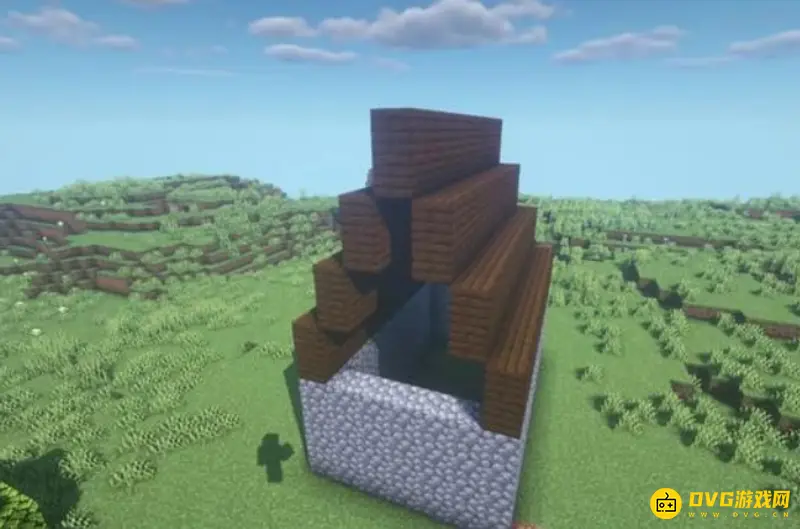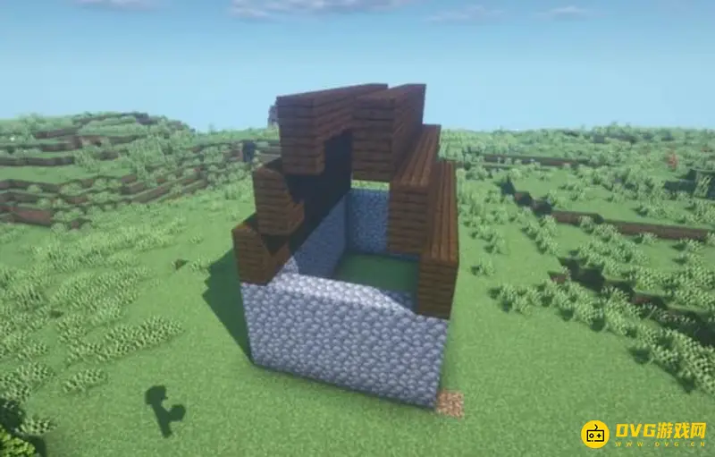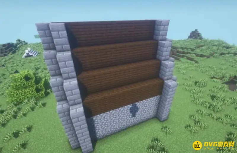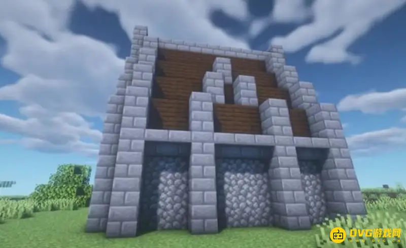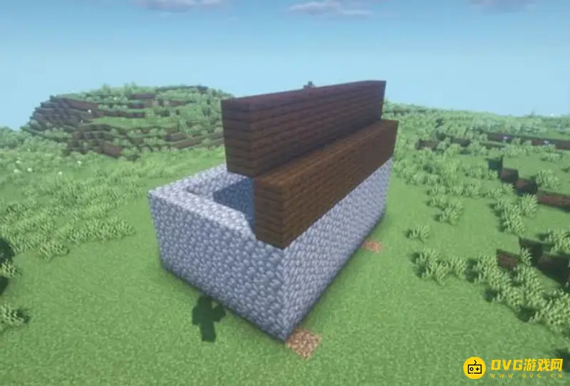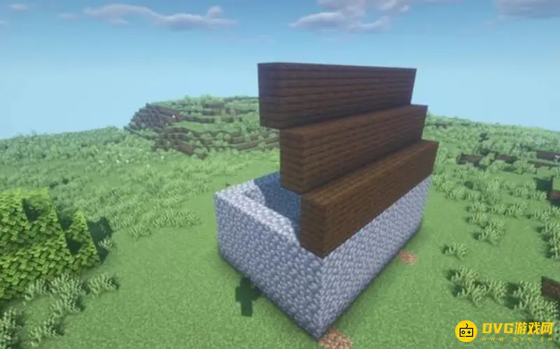 15、在建筑的两侧放置一块石砖,一块圆石墙和一根圆木