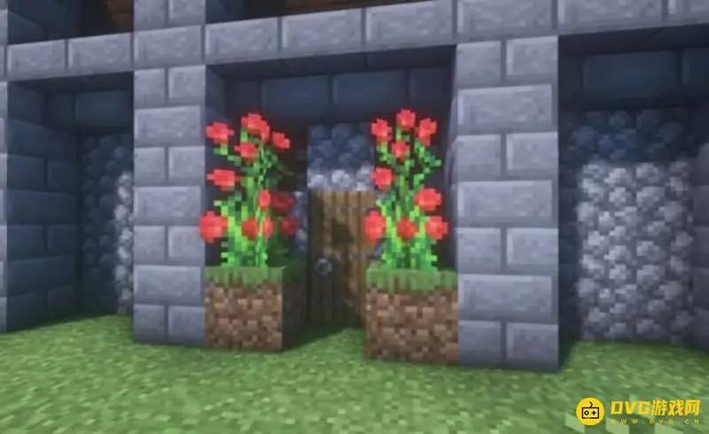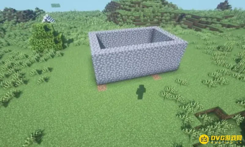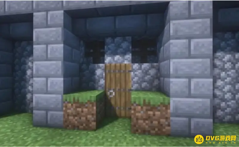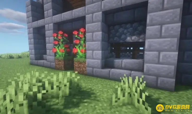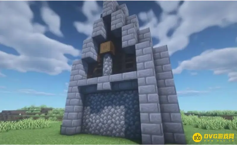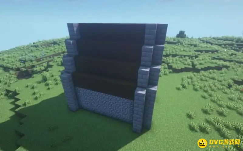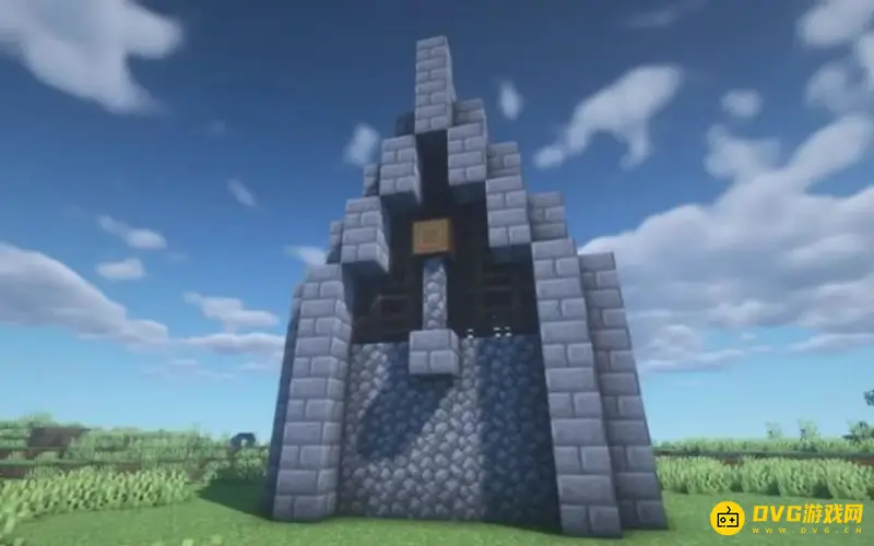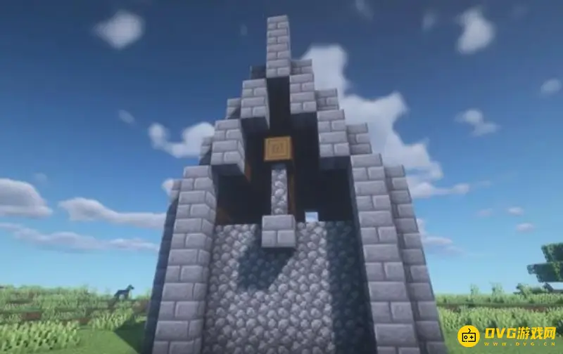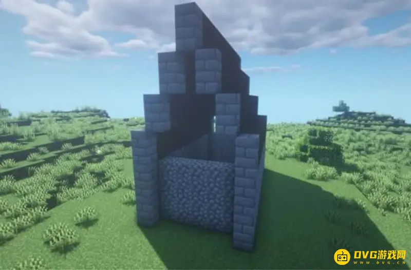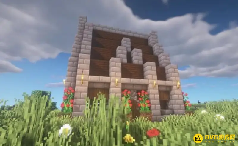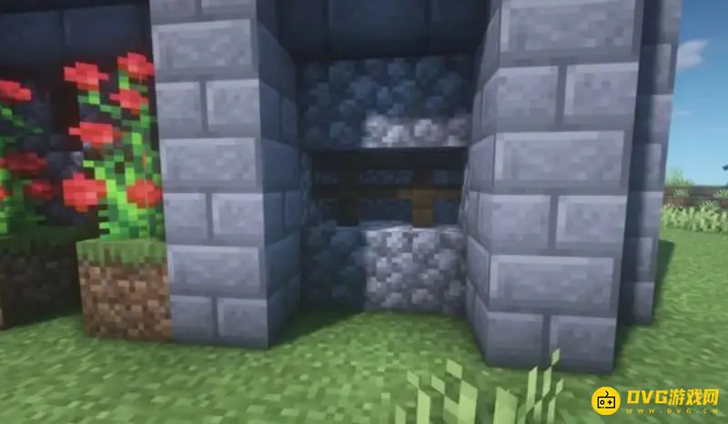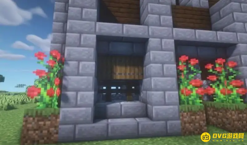 15、在建筑的两侧放置一块石砖,一块圆石墙和一根圆木