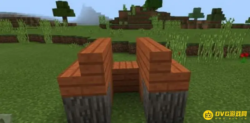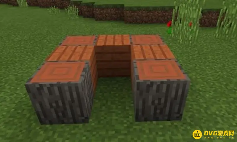 放置4个原木,确定大小,放置木板,放置楼梯。