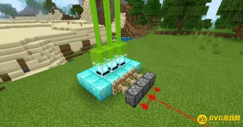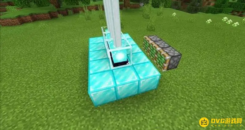 5、接着选择你喜欢的颜色的玻璃块,摆在信标上方,这样就能得到我们想要的激光颜色了