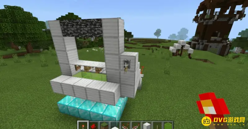 7、依次摆上栅栏门、羊毛地毯和最上方的基岩,接着在激光门一侧加上3个红石比较器,在一旁摆上如同楼梯排布的铁块,即可成功制造激光门。