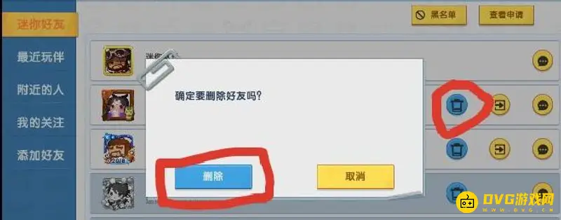 游戏玩家首先需要找到你要删的那个好友,然后再点击该玩家上面的那个垃圾桶图标,这时候系统会提示是否删除好友,玩家只需要点击删除就可以把好友删除了。