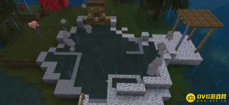 四、开始倒水,给温泉加上泉水,温泉就建造完成了,如下图所示。