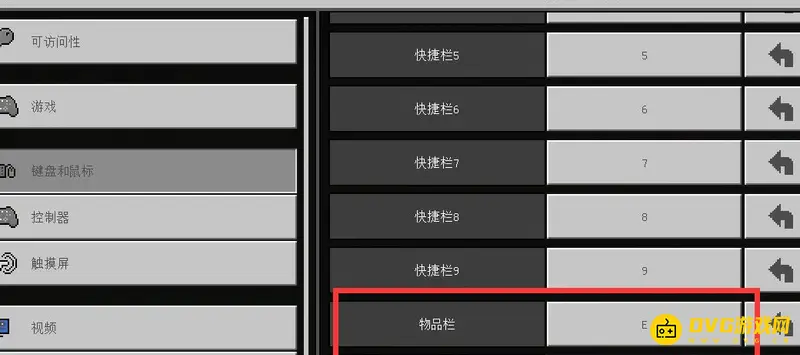 2.在键盘上直接按ESC,弹出界面,选择设置选项,在设置选项中选择键盘和鼠标这个选项,在当前界面按照箭头方向滑动界面,可以看到物品栏的快捷键是什么,也可以进行更改。
