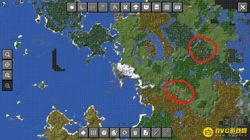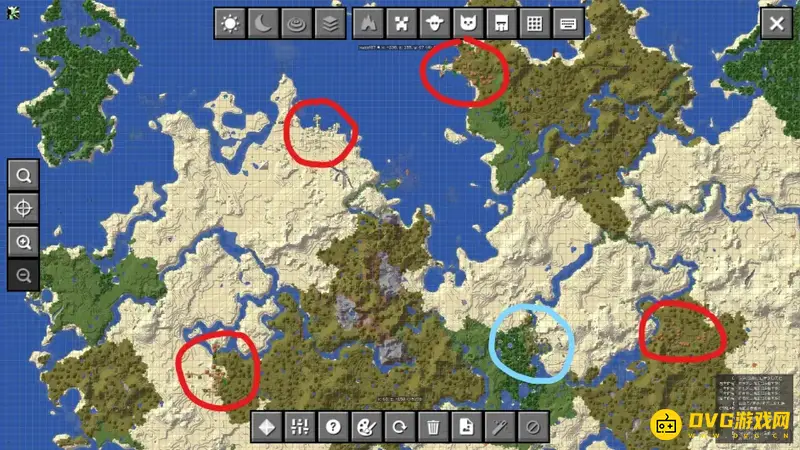 蓝色是出生点村,上面两个临暖水海洋的码头村,离珊瑚非常近。再往右上有两个村子,正上是临湖三村。