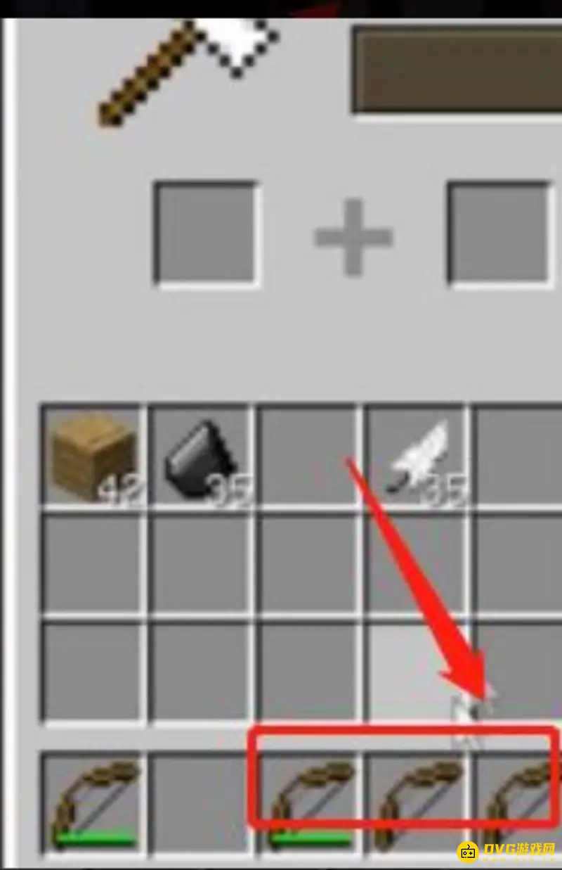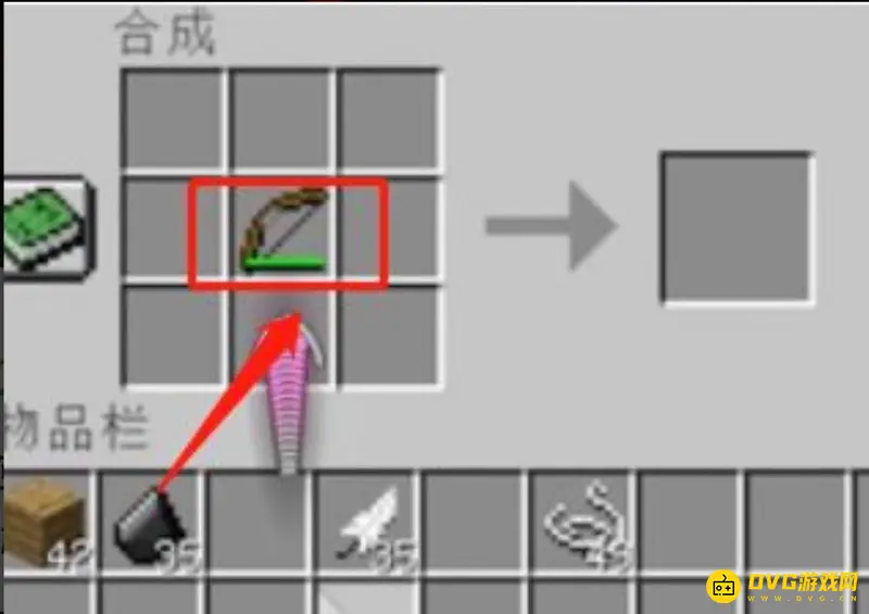 1.把两个损坏的弓放入合成框中就可以合成一个完好的弓,如下图所示:
