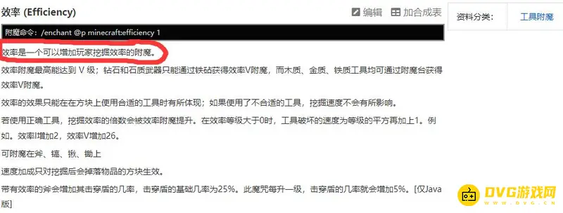 2,然后就可以在上方的说明中发现,效率作用为增加玩家挖掘效率。