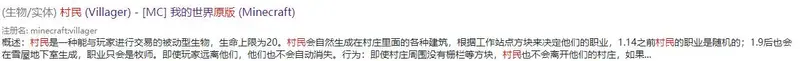 1,首先我们搜索并进入我的世界村民的相关说明。