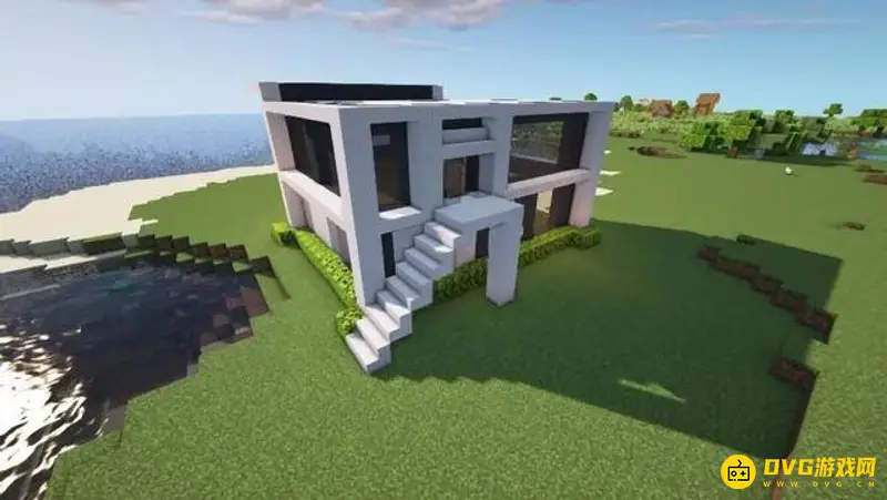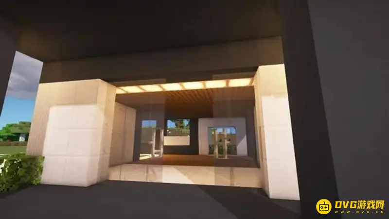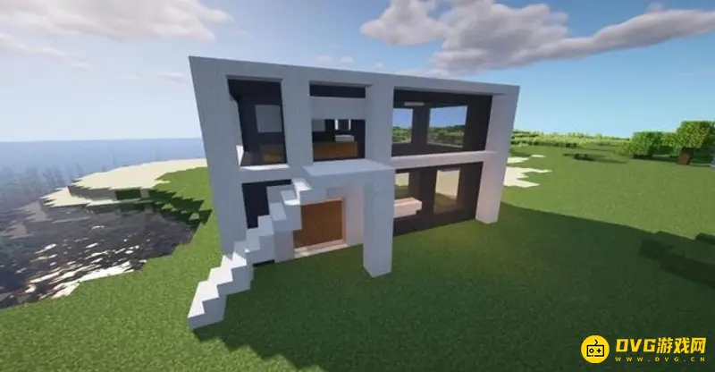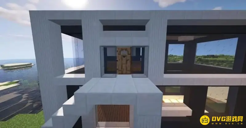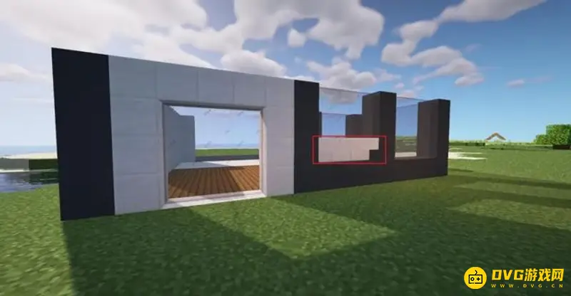 15、来到房子的背面使用石英楼梯、竖纹石英块、石英台阶搭出图中的楼梯