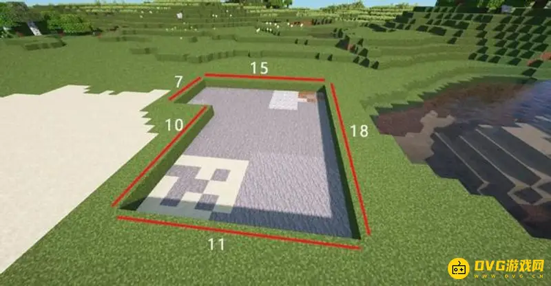 13、根据图中的位置指示在房子的两侧使用竖纹石英块搭出5根柱子
