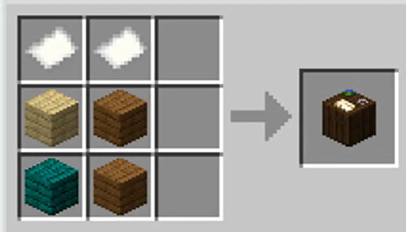 制图台可以用两张纸和四个木板进行合成,摆放方式是两张纸摆在第一行的前两格,四个木板摆在二、三两行的一二两格。
