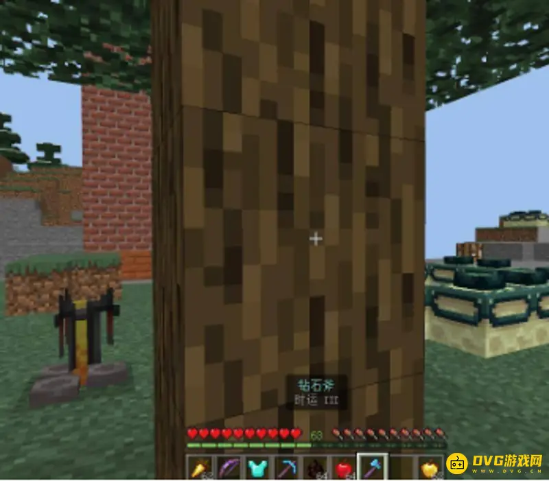 游戏中斧头时运可以增加掉落物的数量。用带有时运附魔的斧头砍树,砍下来的树可以变成三倍或者两倍木头,增加了掉落的数量,如下图所示。