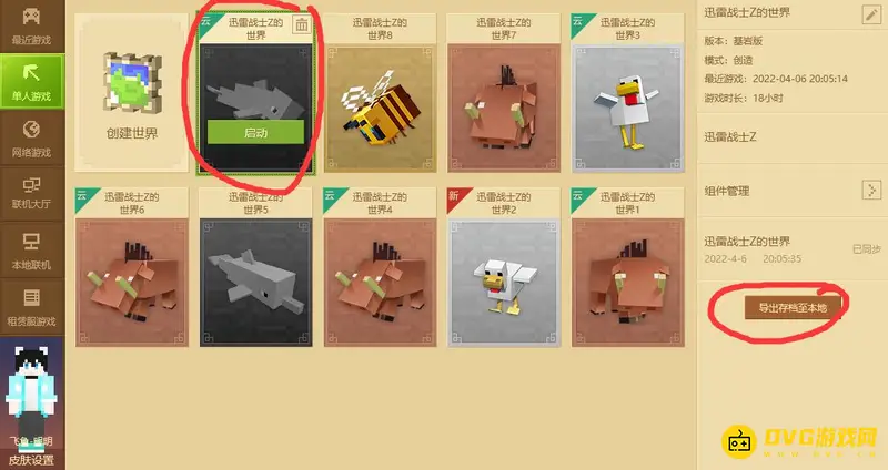 1,首先我们需要需要进入创建游戏界面,点击左侧的单人游戏,在选择想变联机房间的地图,点击右侧导出存档。