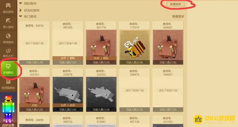 2,然后我们点击左侧本地联机,点击右上角新建房间。