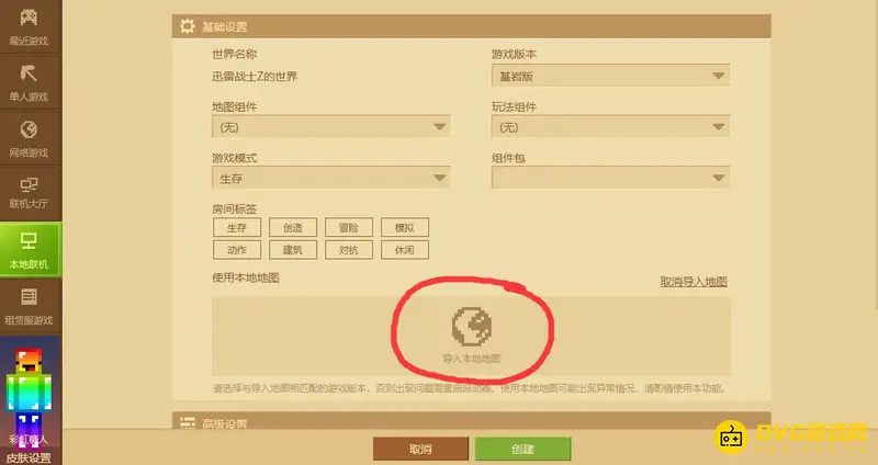 3,然后导入刚刚导出的地图,就可以把单机变成联机房间了。