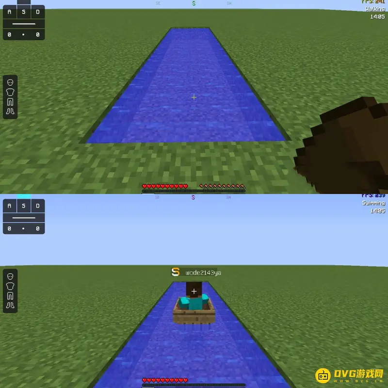 3.拿到船后,找一个水源,把船直接放入水中即可,按住移动键即可控制船,如图所示