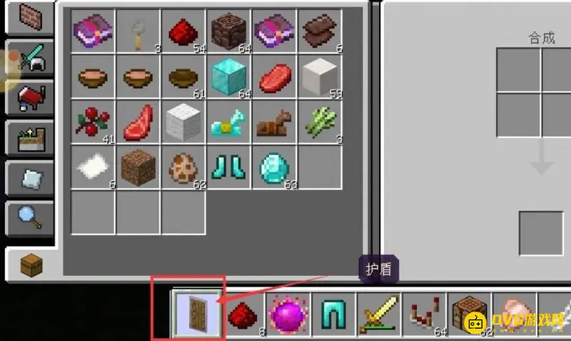 1、启动我的世界,进入局内游戏,然后准备好盾牌。