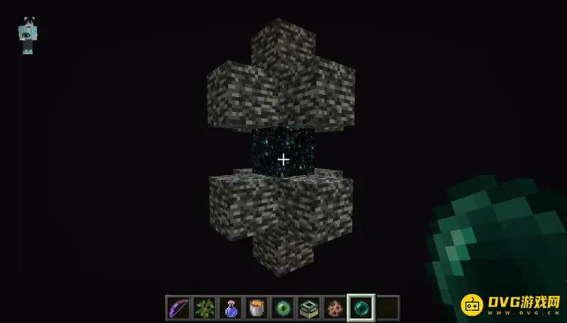 1,首先我们打败末影龙后,附近会出现一个如图所示的传送门,我们拿末影珍珠丢进去。