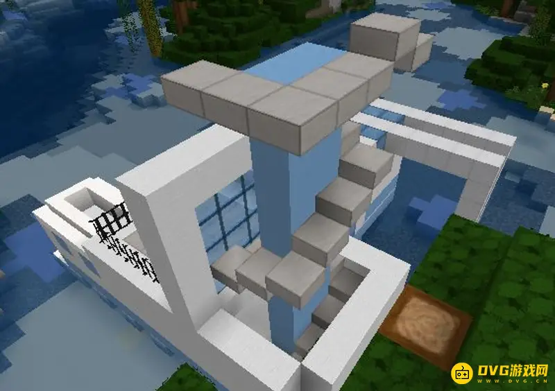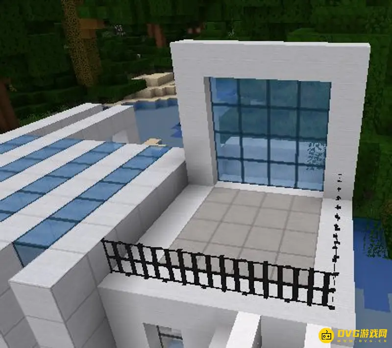 8、为了不让联通卧室和大厅的楼梯显得太过显露,可以在前面建造一个露天阳台和一面玻璃屏风来遮盖住我们的楼梯通道。