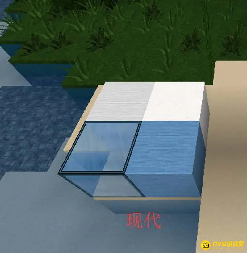 10、先大致圈出卧室的范围,在底下铺上玻璃块,墙体的最底一层用蓝色方块,之上再叠三层方块。