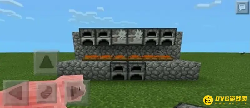 5.在地狱岩上方两个方块位置的墙上放活板门,注意放置位置,放置不对火会灭掉。