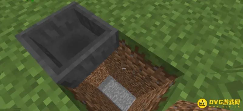 2、在漏斗旁边挖5格深,在漏斗下面挖4格深,挖更深也行,让漏斗旁的深度与漏斗下面的深度持平。