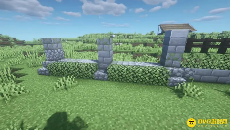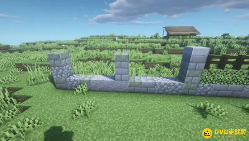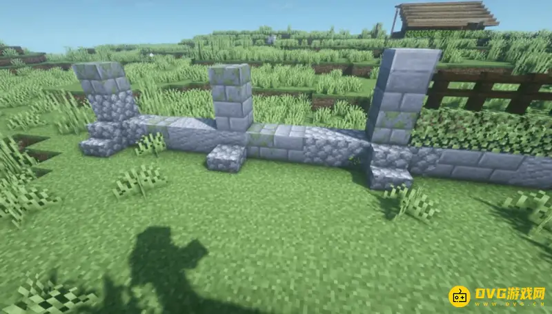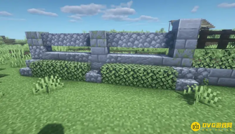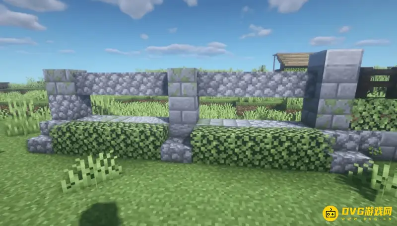 在旁边建造两根柱子,柱子间空四格然后用圆石、苔石砖、安山岩等材料替换一部分石砖