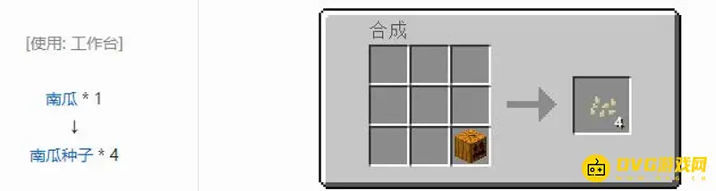 2,接着在工作台里面放上一个南瓜,然后就可以成功合成四个南瓜种子了。