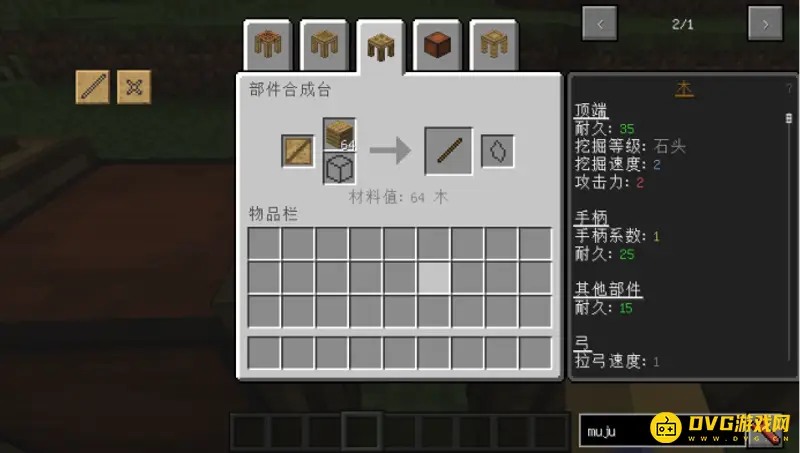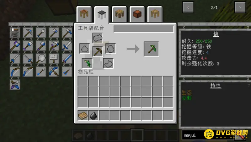 1、匠魂提供了8种新工具和10中新武器,这些工具或者武器除了传统的功能之外,还被作者赋予了更多有趣的部分。匠魂的工具除了上文中介绍过的修复以外,还有其他快捷的方式进行工具修复,首先我们需要做一些磨制工具,磨制工具的材料要和工具的头部材料一致才行。然后简单的一合成就能够进行耐久修复。