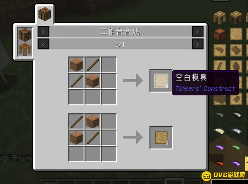 1、匠魂改进了工具制作的一般方法,我们没办法简简单单在工作台里面一合成就得到想要的工具,首先我们需要做一些空白模具。
