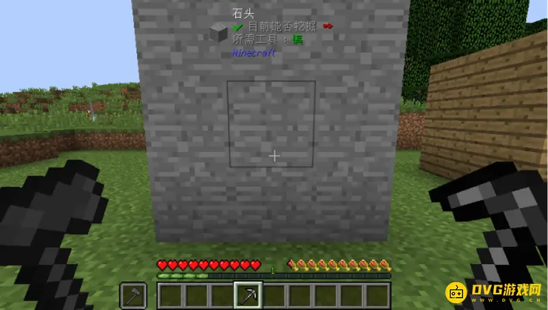 3、除此之外,匠魂还增强了原版的双持系统。比如我们主手持有一个匠魂镐,副手持有一个匠魂手斧。当我们直接左键挖掘石头时,匠魂能够非常智能的选择镐子来挖掘。而面对木头时,则有能够自动选择手斧来挖掘木头。