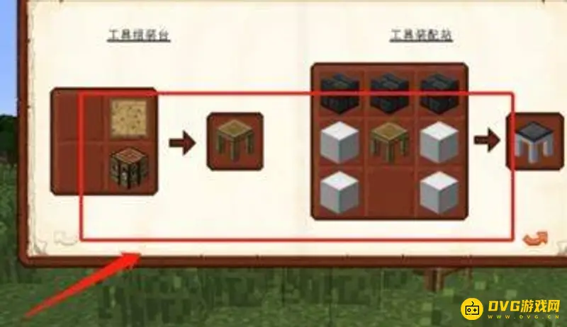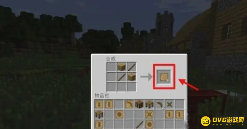 2、点击将背包打开,将木棍和木板放在工作台上,得到一个空白的木板。