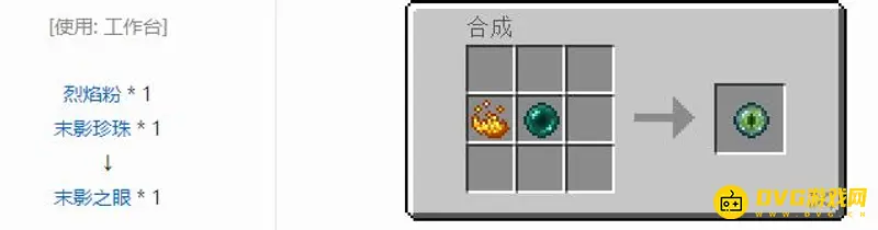 3,最后我们用一个烈焰粉和一个末影珍珠就可以合成末影之眼了。