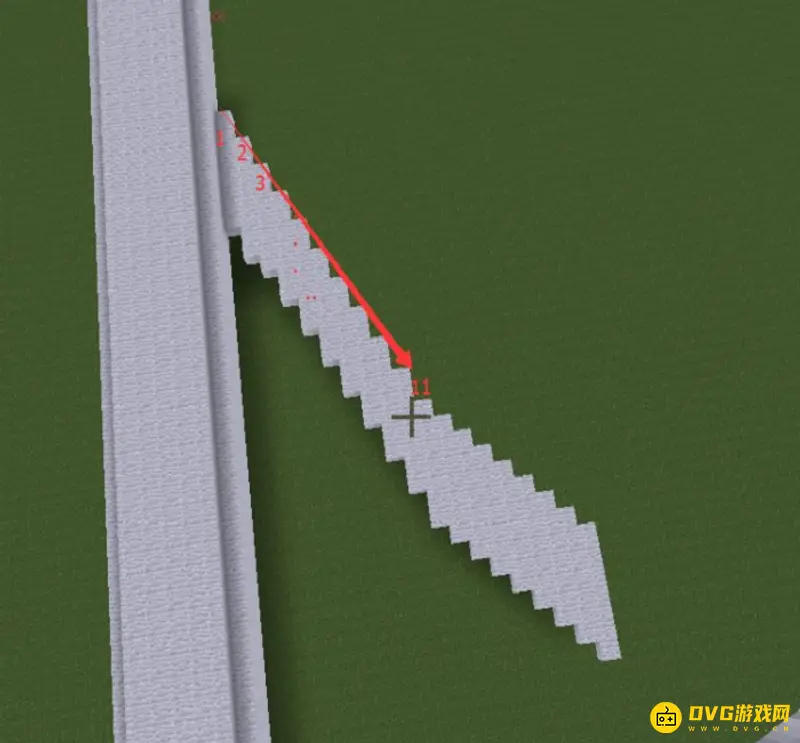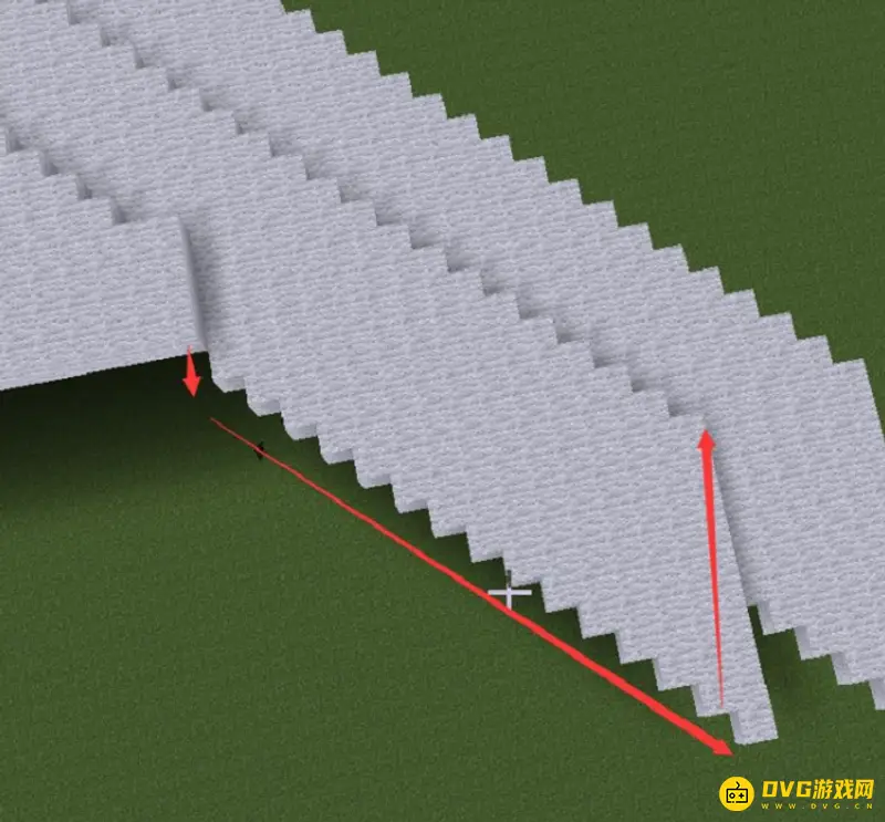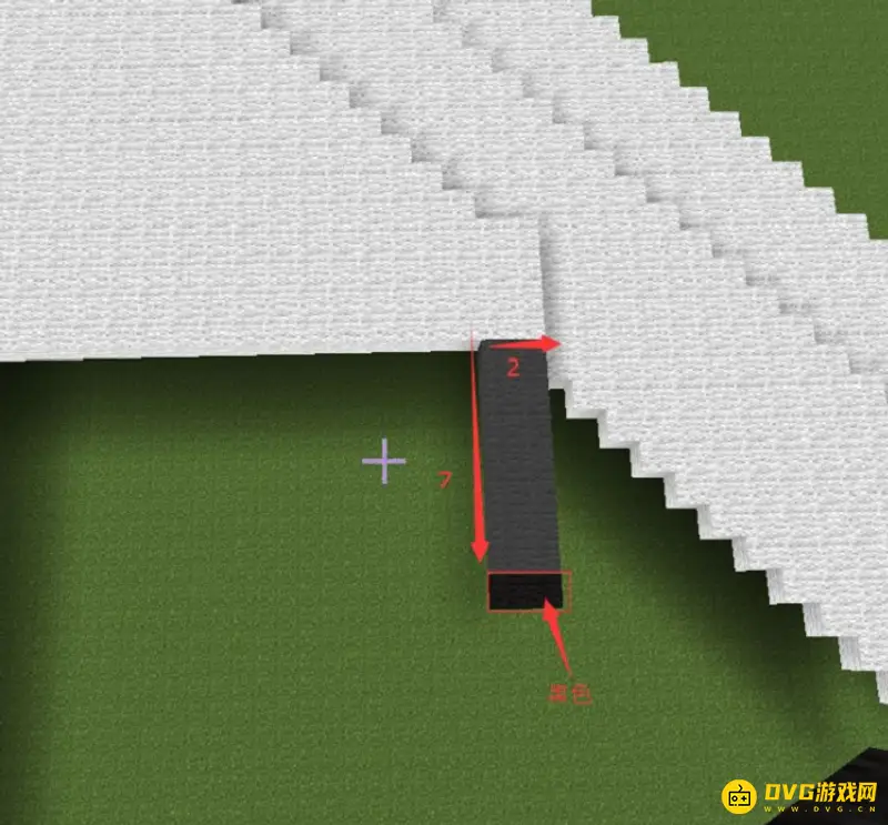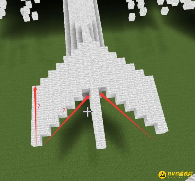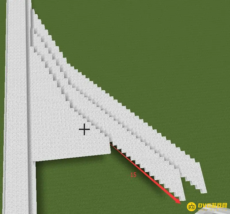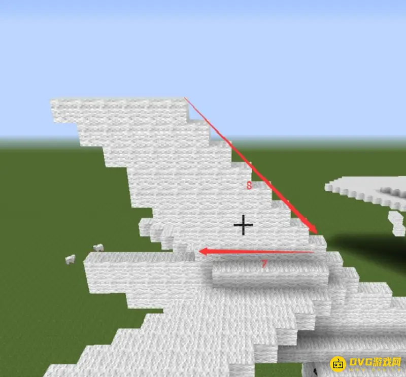 30.然后在第五层,斜向放长7,斜度也是7的方块。