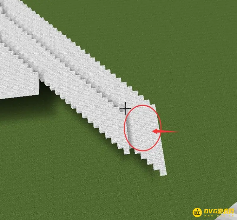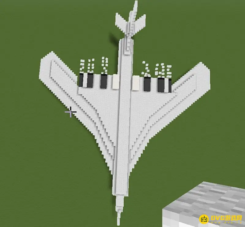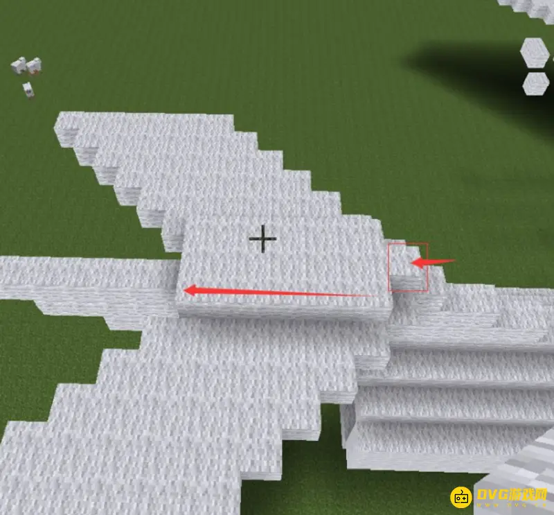 28.最后开始做机尾。首先在机身上放置宽3格长10格的羊毛。然后向外扩充5格。