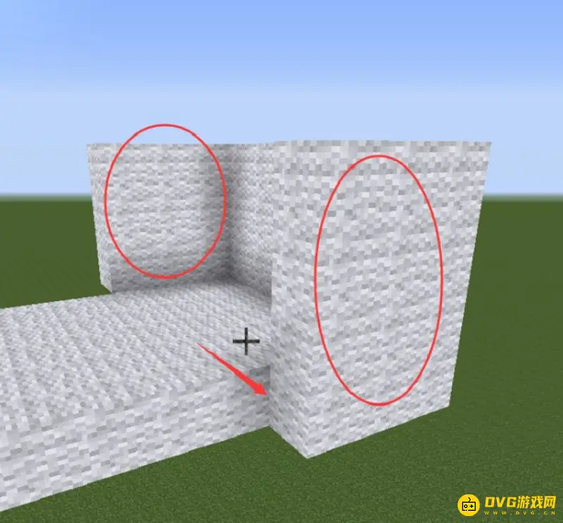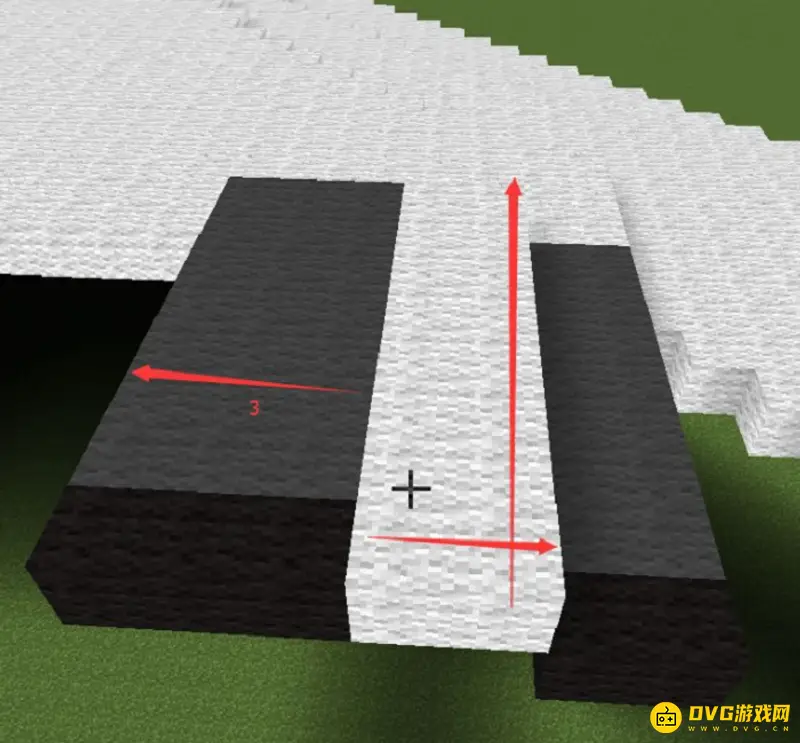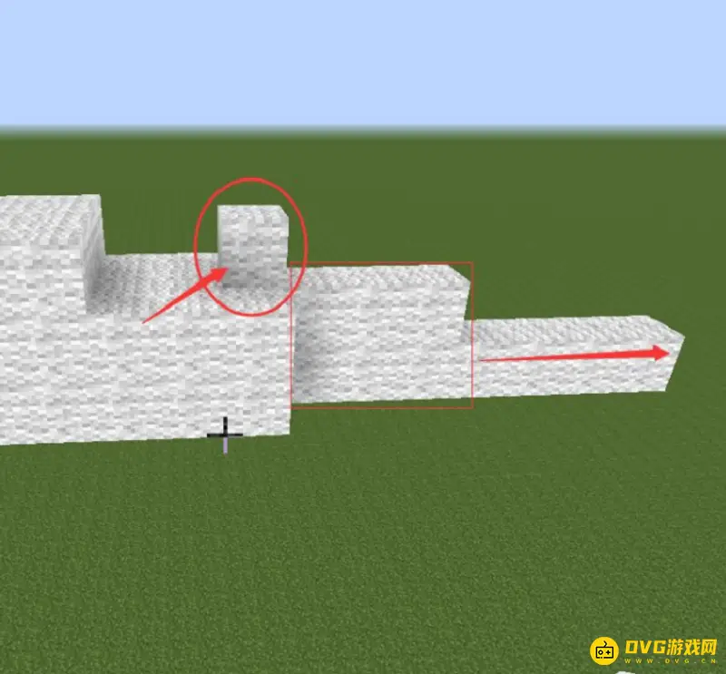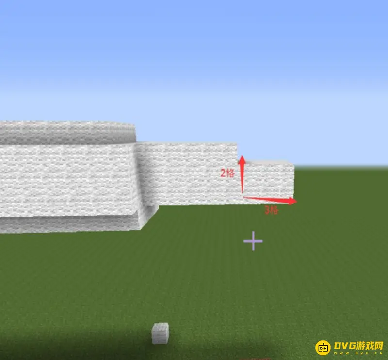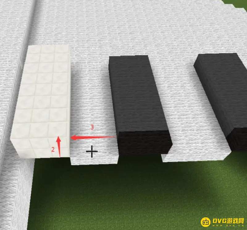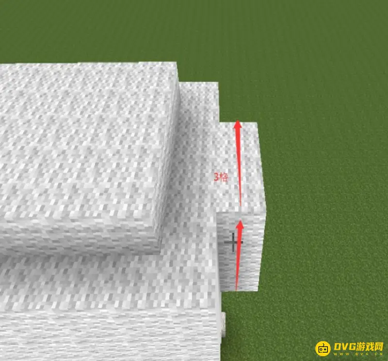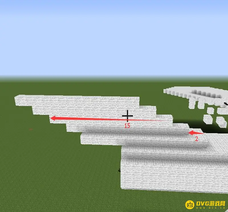 25.然后低一格,放宽2的白色羊毛,并继续提高1格放高2格的宽3格的石英块。