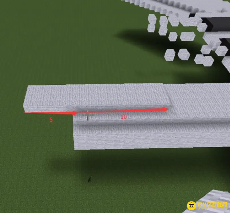12.接下来开始做机翼(左边跟右边的机翼的做法是一样的)。首先在机身向后距离10个位置开始放羊毛,羊毛的距离是7格。