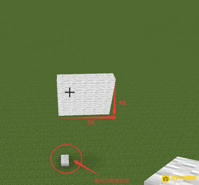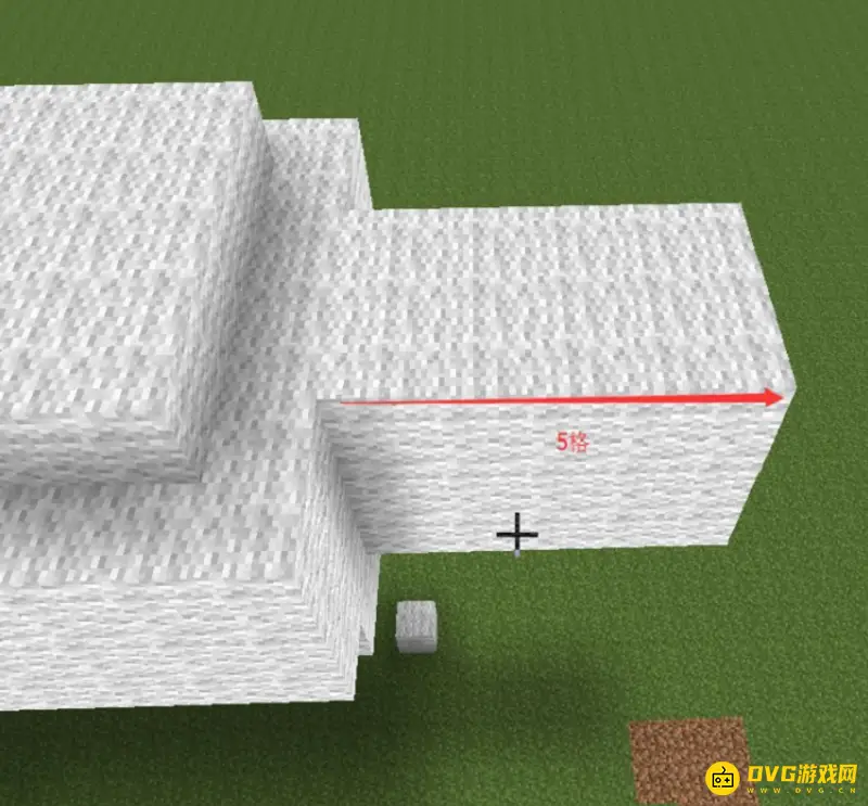 2.确定好高度,我们在最高那一格上开始放白色羊毛,横向5格,竖向4格。