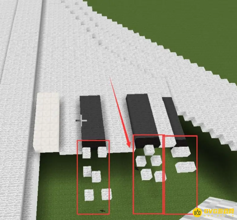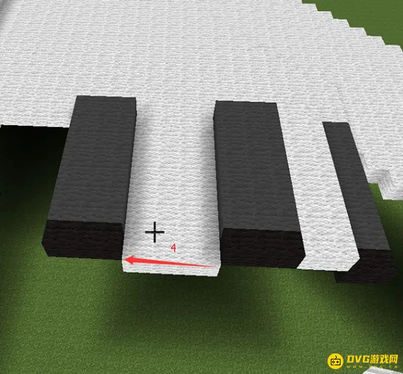 23.然后向机身的方向,放置高出灰色羊毛一格的白色羊毛。并继续放置宽3的灰色跟黑色羊毛。