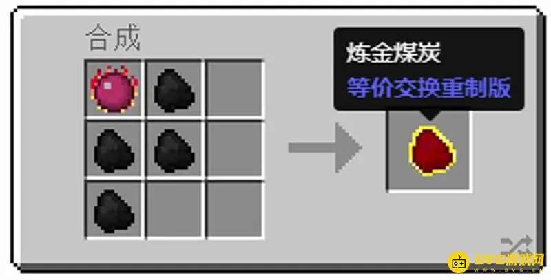 3、在工作台上使用1个贤者之石和4个煤炭就能够合成出炼金煤炭。