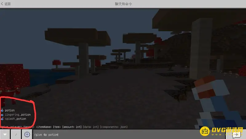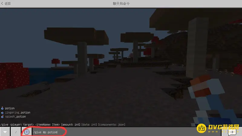 1,例如我们打开聊天框输入获得药水的指令/give @p potion。