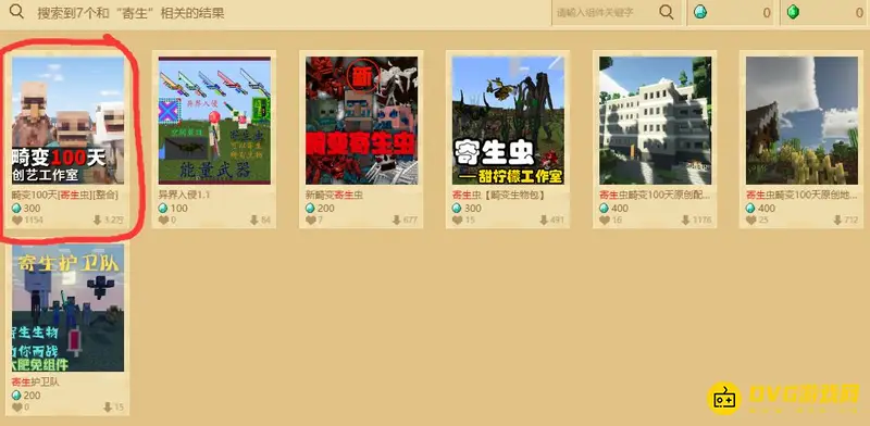 1,首先去资源中心搜索寄生虫,点击第一个MOD进入界面。