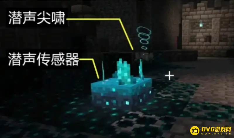 游戏里走路、进食、放置方块等等发出的声音,被潜声传感器侦测到周围的声音后向外发出信号。潜声尖啸会接收来自潜声传感器发出的信号,潜声尖啸就被激活了。