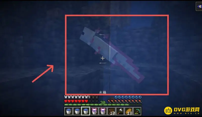 2.找到了美系源之后,用铁桶点击美西螈就可以把它抓住了。