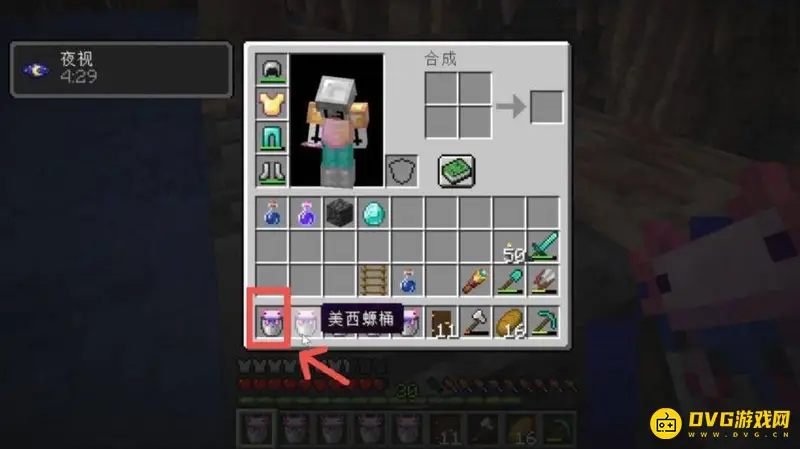 1.玩家用铁桶抓住蓝色美西源就可以获得它了,首先玩家先准备一个空桶,然后去寻找美西螈。