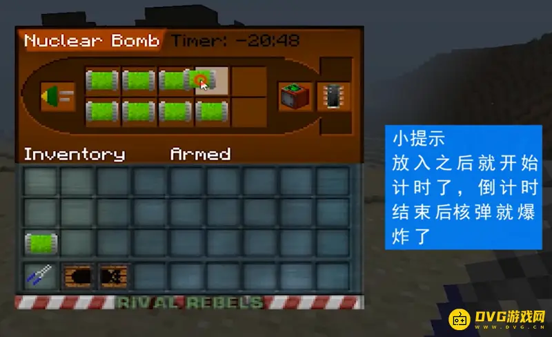 1、实验版的核弹有界面,右击打开,要用工业tnt和放射性物体,如铀238,铀235和钚(其中不放放射物的核弹威力最小,放钚的威力最大,但不能用燃料棒做引爆物,爆炸的威力取决与你放入的工业tnt的量和你放入的放射物的量以及放射物的放射性强不强,如果要大范围引爆核弹的话,建议用一组工业tnt加一组钚使用,注意,Nei的无限放置不能在核弹使用)。
